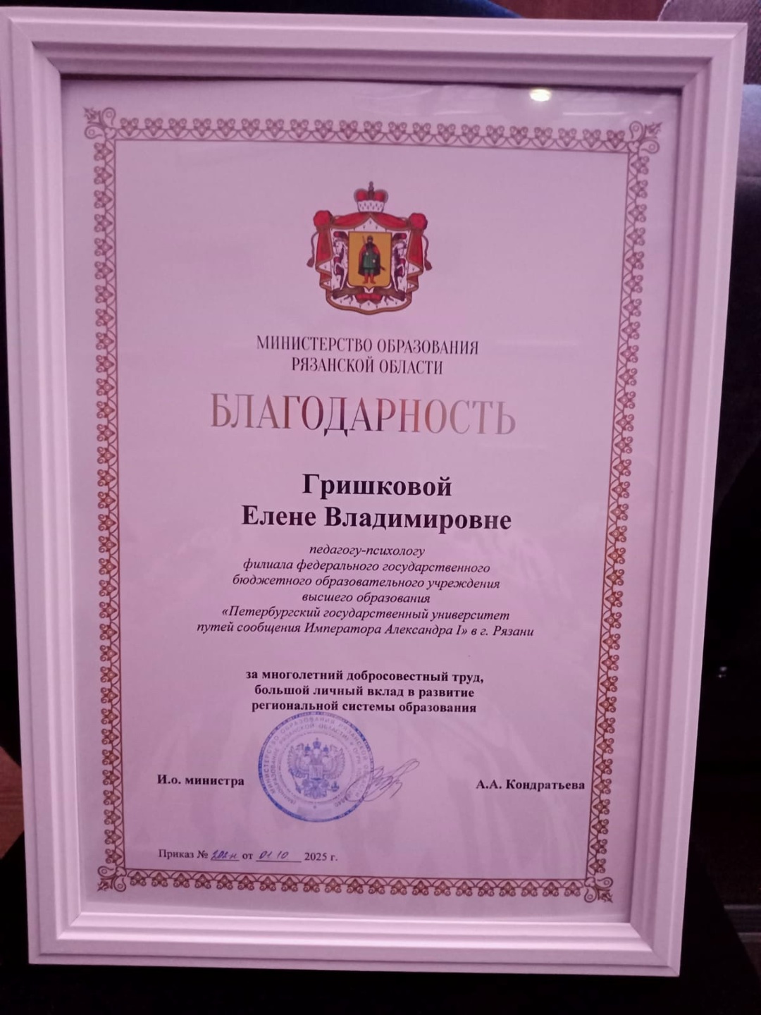 Сегодня, 2 октября 2025 года, в Рязанском дворце культуры и искусства состоялся праздник в честь Дня среднего профессионального образования и 85-летия системы СПО в России, на котором преподаватели и студент Рязанского филиала ПГУПС были удостоены наградами министерства образования Рязанской области: