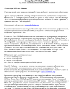 Open OS Challenge – это не просто конкурс, это возможность проявить себя, получить ценный опыт, найти единомышленников и внести свой вклад в развитие Open Source-сообщества. Не упустите шанс стать частью этого масштабного события!