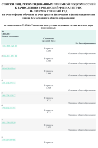 СПИСКИ ЛИЦ, РЕКОМЕНДОВАННЫХ ПРИЕМНОЙ ПОДКОМИССИЕЙ