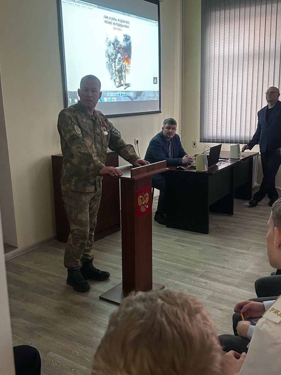 Сегодня Рязанский филиал ПГУПС снова распахнул свои двери для наших друзей: депутата Рязанской областной Думы, руководителя Штаба Захара Прилепина в Рязанской области Григория Парсентьева и председателя Совета РРОО «ИВПК «Десантное братство», помощника депутата областной Думы Геннадия Игнатова! На этот раз они пришли с участником СВО, заместителем командира батальона «Оплот» Александром Алексеевичем Авериным.