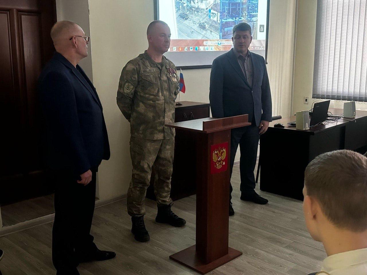 Студенты активно включились в диалог, задавали интересующие их вопросы, на которые Александр Алексеевич охотно ответил. Ребят интересовало буквально всё, начиная от экипировки, устройстве быта на передовой, эмоционального состояния наших бойцов. Говорили о важном: о патриотизме, любви к Родине и чувстве долга. А. А. Аверин призвал ребят никогда не поддаваться панике, быть внимательным к окружающим людям. В диалоге была затронута тема помощи нашим солдатам, которая приходит из тыла. «Письма с теплыми словами от земляков и посылки из родного края греют душу каждому военнослужащему и поддерживают их боевой дух, это очень важное и нужное дело» – рассказал ветеран боевых действий.